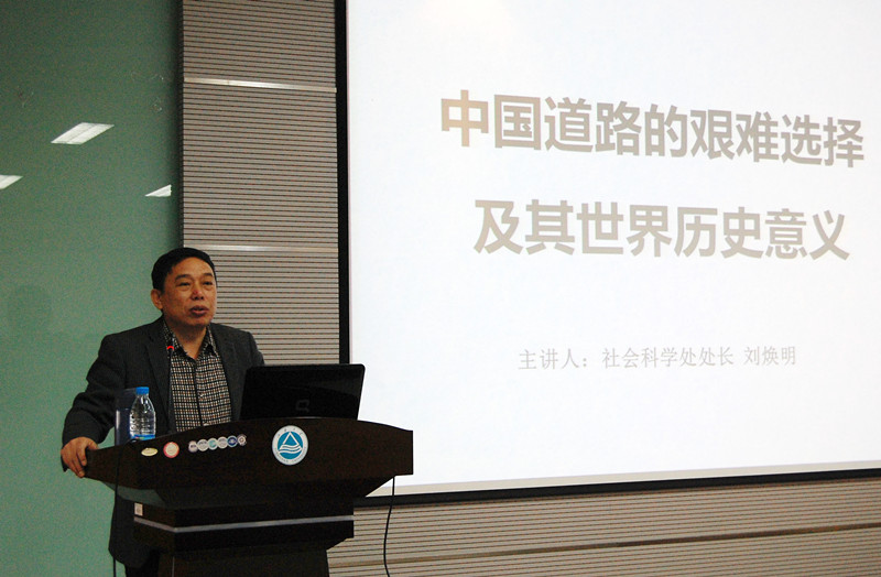 2015年3月19日下午,伟德国际victor1946社会科学处处长刘焕明教授应邀到1946伟德国际源自英国益海嘉里报告厅,为1946伟德国际源自英国学子做了题为“中国道路的艰难选择及其世界历史意义”的专题讲座,1946伟德国际源自英国副书记王维老师主持讲座。