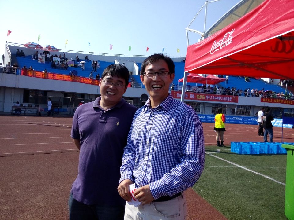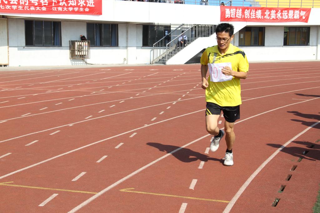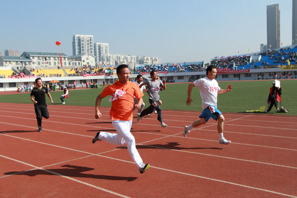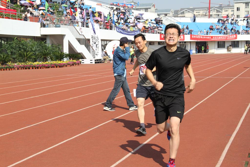 焦爱权老师参加男子1500米长跑比赛 邹孝强老师参加男子800米长跑比赛
