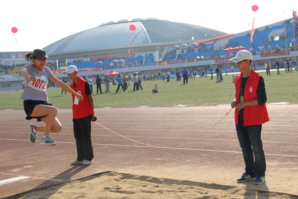 马芸老师参加女子跳远比赛 博士后张晓维参加女子跳远比赛