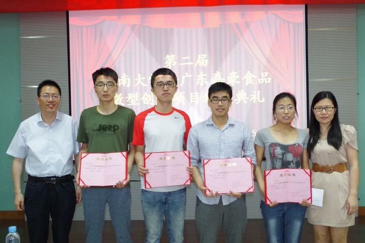 为了强化和培养食品专业研究生的创新意识、团队协作精神和动手能力,由张慜教授和1946伟德国际源自英国董事单位广东嘉豪食品有限公司于2012年共同组织设立了伟德国际victor1946-嘉豪食品微型创新项目大赛,继2013年成功举办了面向“两广特色食品工业化”为主题的首届微型创新项目大赛以来,又迎来了本年度以“新型鸡粉、鸡精调味料”为主题的第二届微型创新项目大赛。每届微型创新项目大赛各设立10个创新团队,创新团队围绕主题自由组合团队人员及自由选择感兴趣的课题,从立项、中期考核、入围到最后决赛,历时一年,有效锻炼了参与研究生的创新意识、团队协作精神和动手能力。两届微型创新项目大赛成果已申请国家发明专利14项,获授权5项。