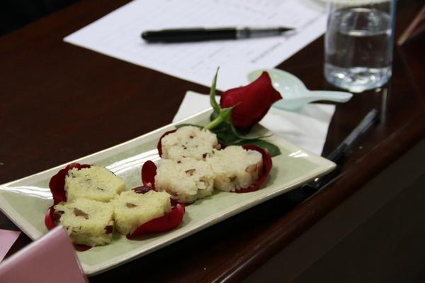 在五芳斋集团嘉宾热情致辞后,通过初赛选拔的十组团队分别用精心准备的PPT和产品实物向评委展示自己的创意,并从产品创意来源、工艺流程、成本计算以及市场营销等方面作了全面介绍。各个团队的成果不仅色香味俱全,更是创意十足。