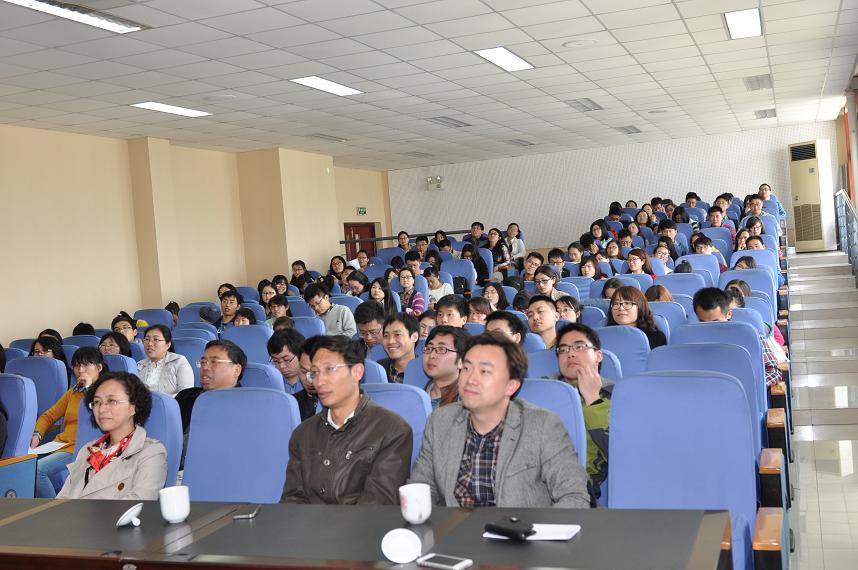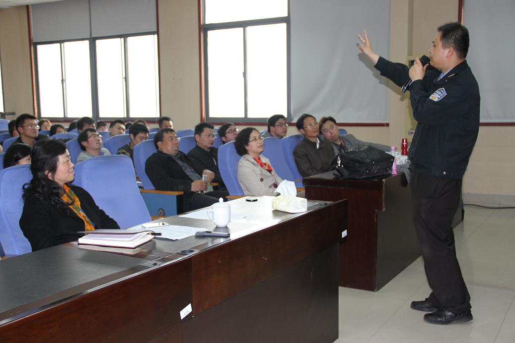 讲座会场全景 师生认真聆听讲座 唐磊教官做讲座