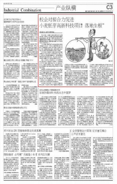在业内看来,河北家丰公司与科研院校的成功对接,促使小麦胚芽变废为宝,得到高效利用,较大增加了产品附加值。有数据显示,每加工1000吨小麦胚芽油,相当于种植一万亩花生油的产量。对此,业内普遍认为,小麦胚芽综合深加工,推动产业结构的调整,大大提高社会效益,为人类生活健康做出新贡献。