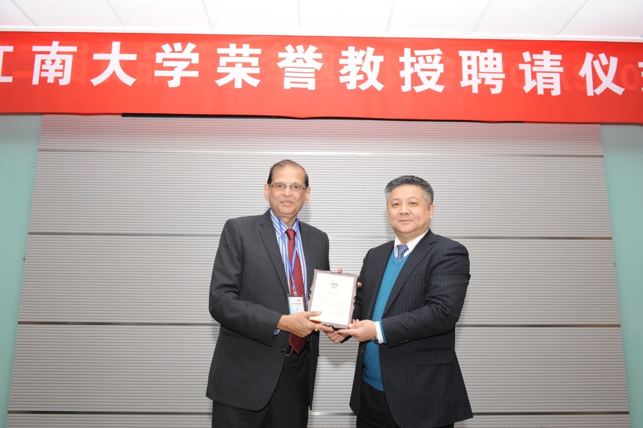 1月13日,2013年度中华人民共和国国际科技合作奖获得者艾伦·牟俊达(Arun S. Mujumdar)教授受聘伟德国际victor1946荣誉教授仪式在我校1946伟德国际源自英国益海嘉里报告厅隆重举行。伟德国际victor1946副校长徐岩教授、1946伟德国际源自英国院长陈卫教授、1946伟德国际源自英国副院长周鹏教授、伟德国际victor1946国际交流处蔡建英老师、无锡市科技局副局长徐重远、无锡市科技局国际交流处处长倪皎云、1946伟德国际源自英国张慜教授等作为嘉宾出席了受聘仪式。授聘仪式由周鹏副院长主持。