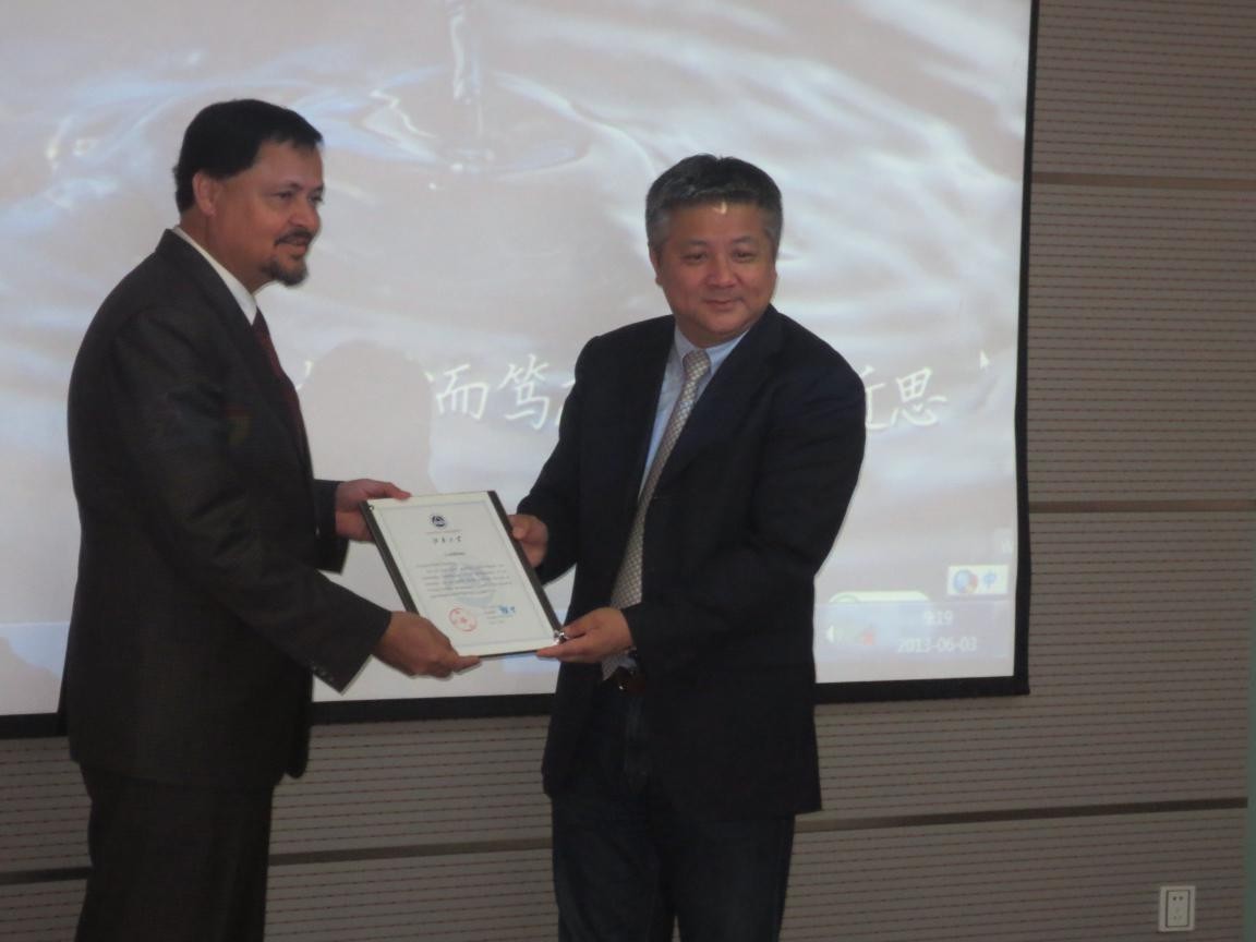 徐岩副校长为Bhesh Bhandari教授颁发受聘证书