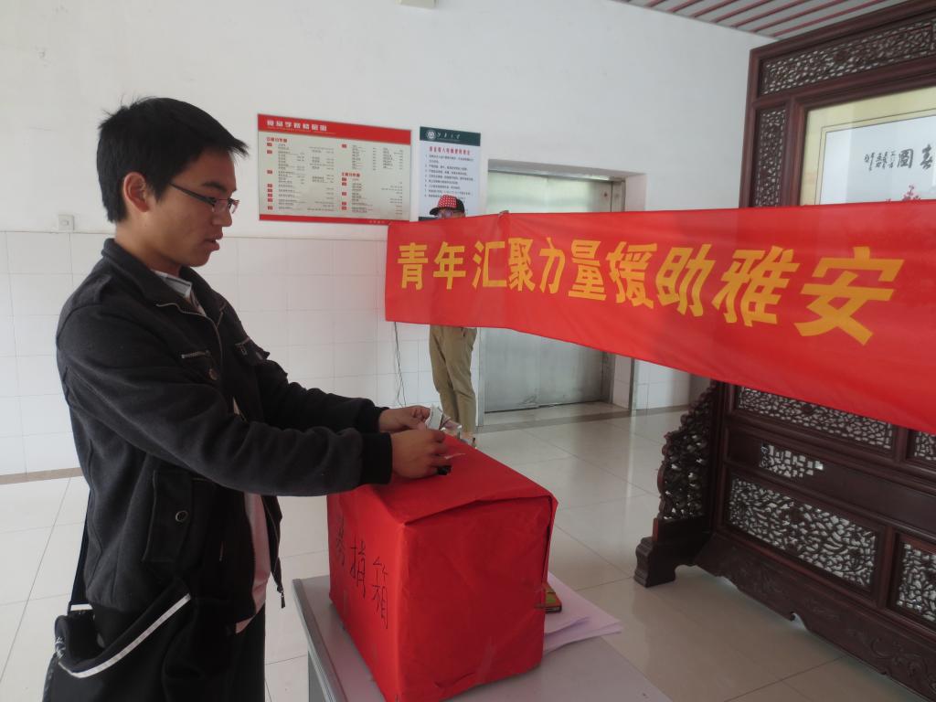 2013年5月4日,1946伟德国际源自英国研究生团员青年积极响应校团委提出的“动员我校广大团员青年积极投身四川雅安地震赈灾援助行动”的号召,研究生会主动组织了以“团员青年汇聚力量援助雅安,师生员工奉献爱心共渡难关”为主题的“交一次特殊团费的募捐活动”,活动旨在鼓励同学们关注四川雅安地震灾情, 献出爱心,共同为雅安祈福,为雅安人民送去千里之外的温暖。活动发出积极的信号,得到了研究生各团支部的积极回应,各团支部积极在团员青年中广泛宣传此次活动。作为极具社会责任感的研究生青年,当灾难来临,应该理性应对,而不是慌乱、指责;在做好自己学习工作的同时,要尽自己最大的努力支援雅安,为灾区的人民尽自己的一份力量。本次募捐得到了广大团员青年的积极响应和大力支持,共筹得善款3713元,将由学校统一转交给市慈善机构,最终成为帮助灾区的一股力量。