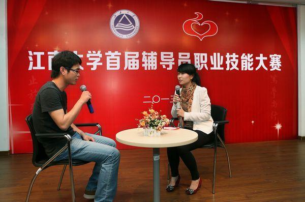 本次大赛坚持以赛促学,以赛促建的指导思想,共分主题班会、微博写作、自我展示、主题演讲和案例分析/谈心谈话5个环节。“主题班会”环节,辅导员提交主题班会策划方案,立意鲜明,创意新颖;“微博写作”环节,依托e江南平台,辅导员围绕“占座”现象,以“甄嬛体”、“代言体”等网络语言发表评论,突出吸引力与感染力。“自我展示”环节,辅导员积极交流工作经验,展示特色工作。“主题演讲”环节,紧扣“中国梦·江南梦·我的梦”主题,深情阐述了属于辅导员的“育才梦”。“案例分析/谈心谈话”环节,情景再现了工作中常见的8个现实案例,测试辅导员的快速反应能力与沟通处置能力。现场气氛热烈,掌声不断,参赛辅导员表现出了良好的职业素养和丰富的学生工作经验,他们的精彩表现赢得了观众的阵阵喝彩。