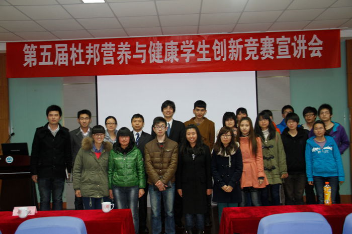 3月13日晚上7点,“第五届杜邦营养与健康学生创新竞赛”宣讲会在1946伟德国际源自英国益海嘉里报告厅成功举行,这也拉开了2013年食品企业竞赛宣讲会的序幕。中国食品科学技术学会国际部陈铮先生、杜邦营养与健康中国研发中心牛奶及牛奶饮品组经理、高级应用专家贾新庄先生、杜邦营养与健康中国研发中心行政主管伍琨女士参加了宣讲会。