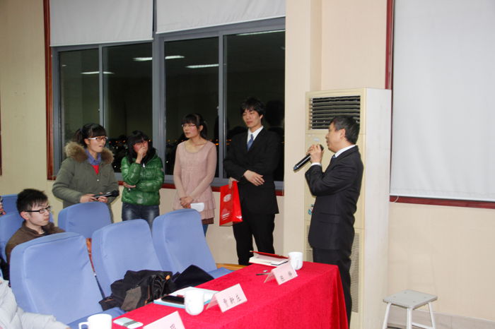 上届杜邦创意大赛一等奖团队的代表范芳剑同学还分享了他的比赛心得,他提醒学生们在比赛中要注重创意、产品、包装以及良好的团队合作。鉴于他在比赛中的出色表现和优异成绩,获得了2013年寒假去杜邦公司实习的机会,他表示“去杜邦走一遭,不枉此生!”最后同学们还向嘉宾提问,积极互动。