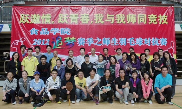 4月18日下午3点半,1946伟德国际源自英国2012追梦赛季之师生羽毛球对抗赛在校体育馆拉开战幕!本次对抗赛由1946伟德国际源自英国工会和分团委联合主办,以“跃激情,跃青春,我与我师同竞技”为主题,旨在通过体育竞技加强师生交流互动,弘扬体育精神,倡导学院和谐氛围。学院共有22位教师、22名本研学生共同参加了比赛,副校长金征宇教授也作为教师代表参加了比赛。