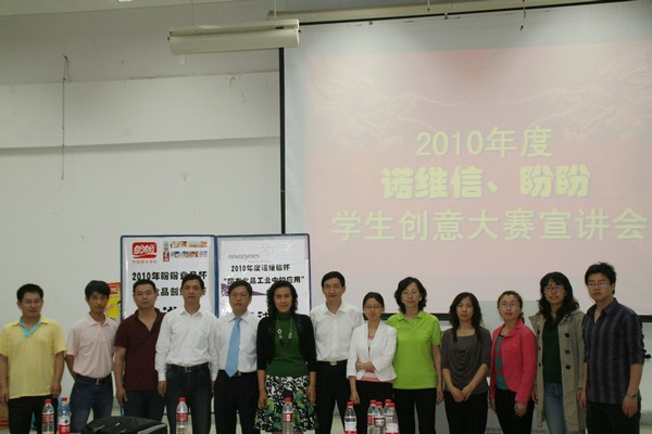 5月7日晚,2010年度诺维信杯“酶在食品工业中的应用”创意大赛以及盼盼食品杯烘焙学生创意大赛宣讲会在伟德国际victor1946第二教学楼2100教室隆重举行。中国食品科学技术学会副秘书长、学术部主任郭勇、诺维信(中国)投资有限公司人事经理隋宁、客户经理伍中云、区域市场经理胡颖、研发经理陈霖,盼盼食品集团董事兼企划研发中心总监吴松青、企划部经理陈茂盛、研发部经理张冶,采购部经理杨元江以及1946伟德国际源自英国党委副书记、副院长曹瑛老师、1946伟德国际源自英国黄卫宁教授、分团委书记苏晓晋老师等出席了此次宣讲会。宣讲会由1946伟德国际源自英国辅导员李博老师主持。