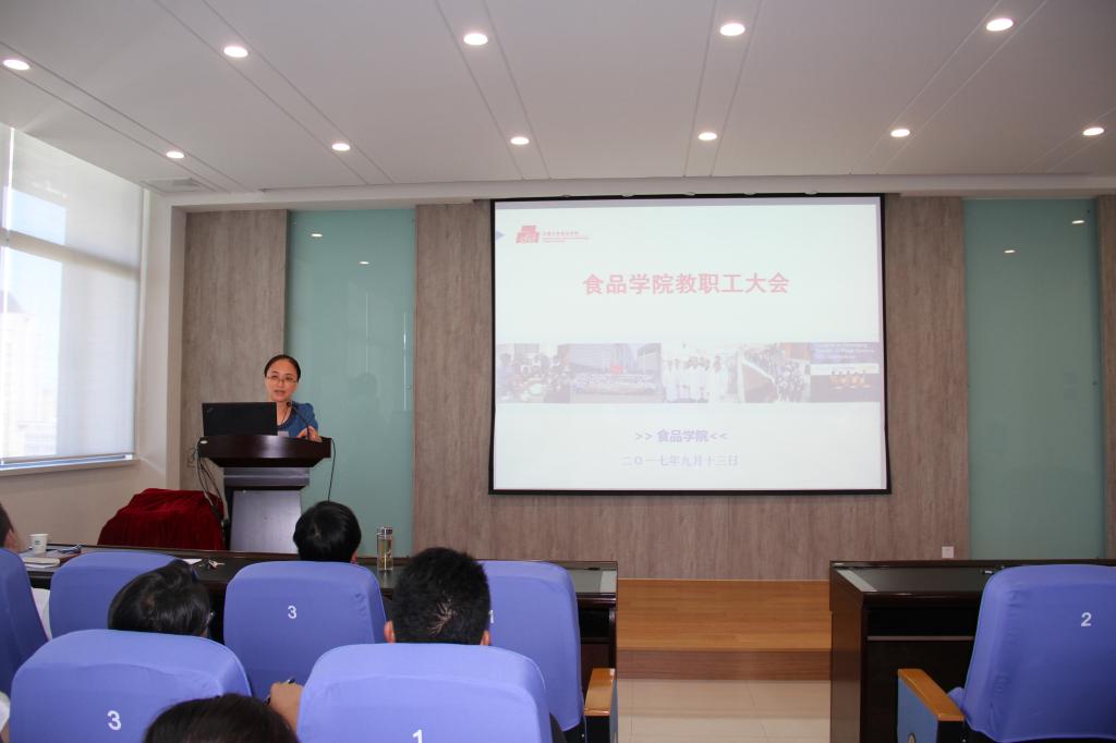 2017年9月13日下午,1946伟德国际源自英国在D912益海嘉里报告厅召开新学期全院教职工大会思想政治理论学习专题会,学院党政班子成员以及全体教职工180余人参加了会议。会议由学院党委书记向琪主持。