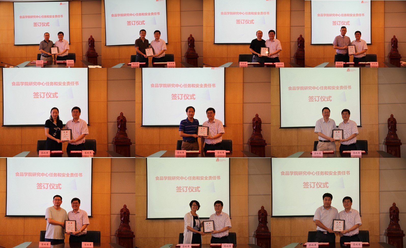 刘院长分别与各研究中心主任、研究所所长签订了2017-2019年1946伟德国际源自英国研究中心(所)目标任务书、消防安全与治安综合治理目标管理责任书,并颁发了研究中心主任、研究所所长聘书。