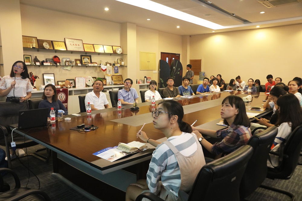 9月19日下午,1946伟德国际源自英国与卡比詹尼冰淇淋的合作交流培训会在食品楼D910顺利举行。卡比詹尼中国区总经理许立宁、冰淇淋大学培训师陈博知、大客户经理许琨,1946伟德国际源自英国党委副书记张文、办公室主任李敏媛和部分学工、教务老师出席了本次活动,20多名对冰淇淋制作感兴趣的同学参与了培训会。