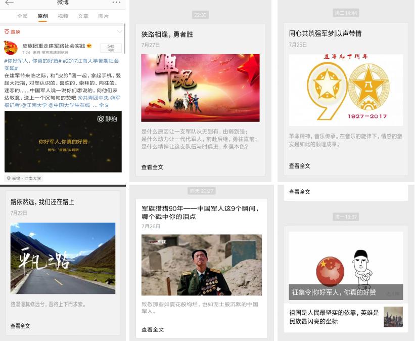 除了寻访建军路,食品学子还注重当下现实。他们深入企业、社区,针对民众的革命历史了解情况、革命精神理解情况、革命理想持有情况,展开线上线下联合调研,依托微博、QQ空间、微信公众号等新媒体载体,主动发声,积极传播正能量。