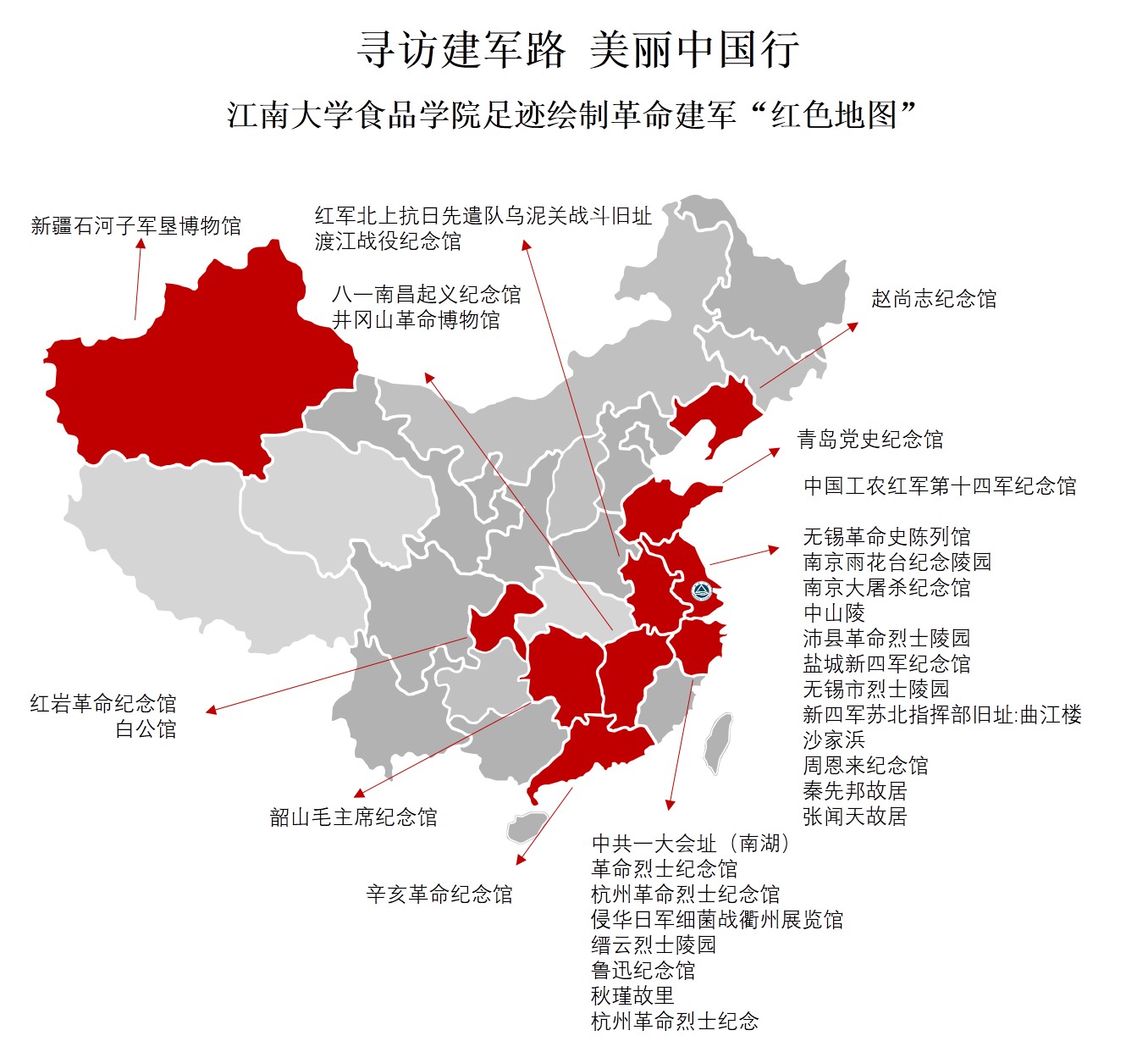 追寻先烈足迹,感悟历史重担。食品学子前往中共一大会址(南湖)、辛亥革命纪念馆、八一南昌起义纪念馆等8个革命建军大事件纪念馆,接受红色洗礼,近距离了解先辈革命经历,理解中国共产党和中国人民解放军诞生及其发展的曲折历史,真切感受红色情怀,追忆革命精神。