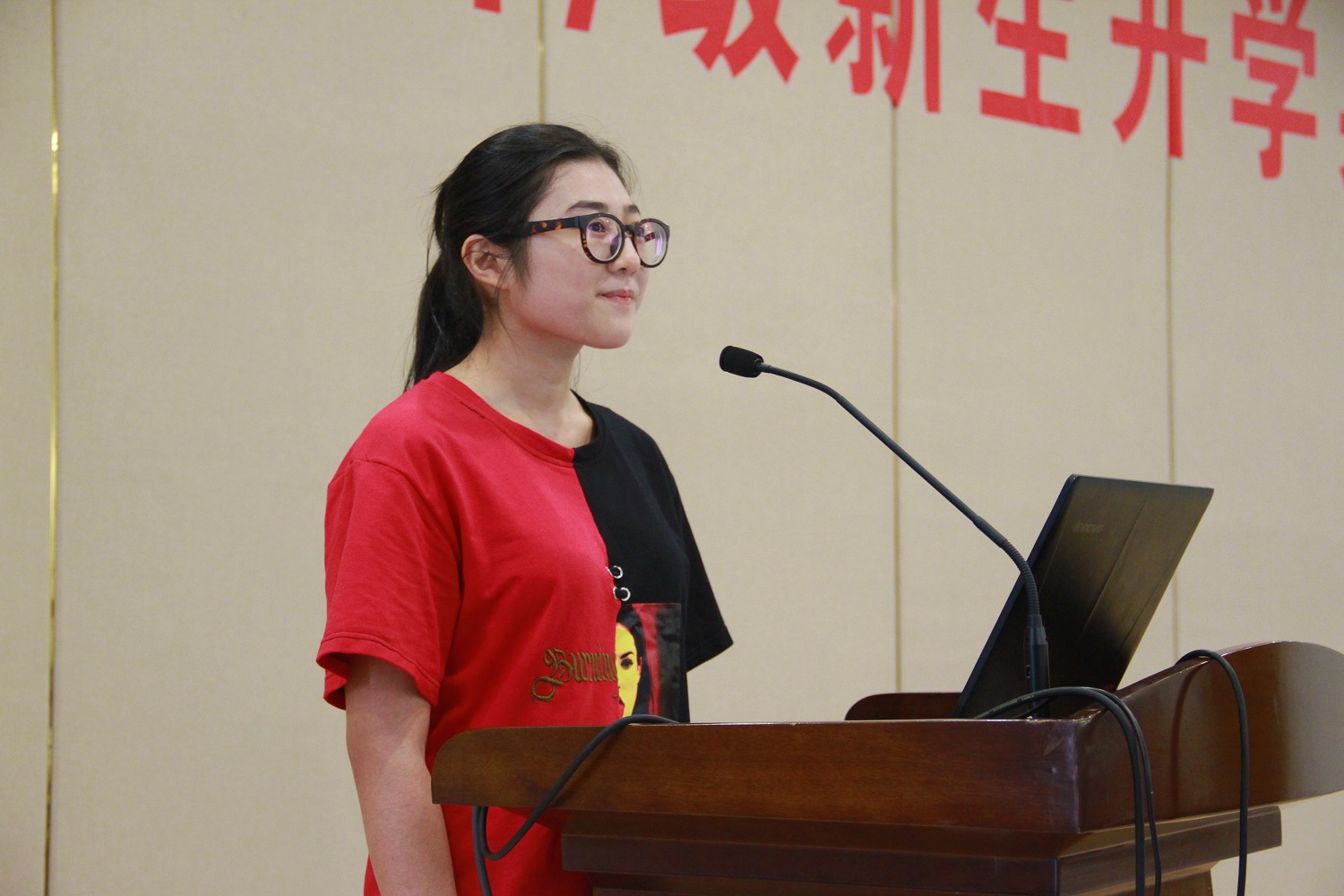 随后,院党委副书记张文老师介绍学生工作情况。重点围绕学院的日常管理、学风建设、学生党建、专项工作和特色资源等五个方面,简要介绍了大学生入党、奖励资助、科技创新、国际交流等情况,特别强调了考试纪律与诚信问题。最后,他希望全体新同学尽快融入大学生活,做到有目标、有规划、有行动,以饱满的姿态开启人生新征程。