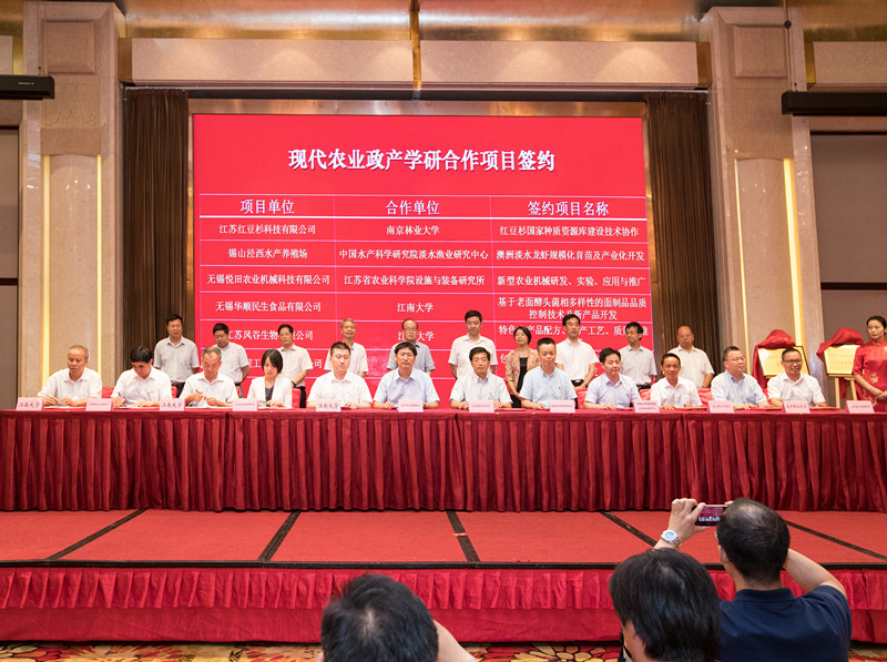 7月4日,无锡市举办了现代农业政产学研合作签约仪式。本次现代农业政产学研合作签约仪式旨在构建无锡市与重点农业院校、科研院所紧密高效的战略合作平台,促进协同创新、成果转化、技术推广、教育培训、人才交流,全面提升无锡现代农业发展水平。我校陈坚校长、校长办公室张光生主任、1946伟德国际源自英国刘元法院长、范大明副院长、童群义教授参加了签约仪式。