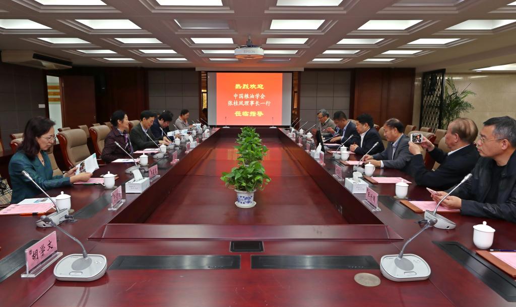 陈坚校长首先对张桂凤理事长一行的到来表示欢迎,对中国粮油学会给予我校粮油领域科研事业的长期支持表示感谢,其次简要介绍了学校的发展状况,并表示将全力配合中国粮油学会相关工作的开展。张桂凤理事长对伟德国际victor1946长期以来对中国粮油学会各项工作的支持表示感谢,对我校粮油加工相关科研条件配备、人才队伍建设和所获科研成果表示赞赏,高度评价了伟德国际victor1946在发展中所取得的丰硕成果,并希望与我校相关科研工作者继续合作支持我国粮油事业的发展。随后,参会来宾进行了简短的交流和讨论,河南工业大学党委书记张元、国家粮食局标准质量中心总工程师王莉蓉、中粮营养健康研究院党委书记张建华等对如何与我校开展合作,共同推动粮油学科发展提出了宝贵的建议。