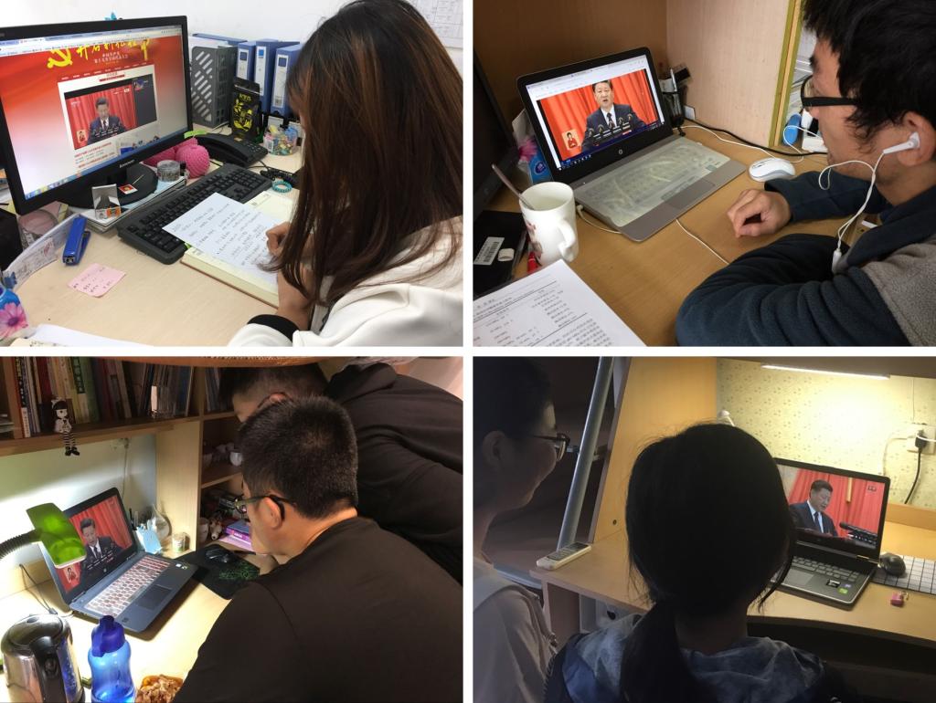 上午8:30,1946伟德国际源自英国师生党员代表分别在1946伟德国际源自英国D910和D522会议室,集体观看党的十九大开幕会直播,在学院党政领导的带领下,共同聆听了习近平总书记的大会报告。