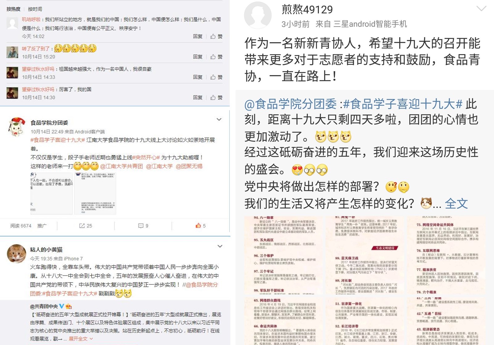 学生线上热议党的十九大