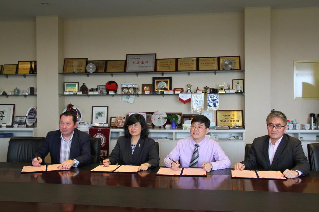 会议开始,无锡市人民对外友好协会、达尼丁市经济发展局、1946伟德国际源自英国以及奥塔哥大学食品科学系四方就两市和两校开展友好交流进行讨论并签署了合作协议。协议旨在积极推进两市各界开展科技、教育、经贸等方面的交流以及两校在食品科技等领域的交流与合作。会议第二项,奥塔哥大学与伟德国际victor1946就研究方向及战略合作进行了洽谈,囊括了食品营养与健康、食品质量与安全、食品加工技术等方面。接下来,两校还对“游学交换”接洽问题进行了探讨,主要涉及短期游学与长期留学两大方面,有志于实现两校间良好的人才交流合作。最后双方就“一带一路”建设高校联盟展开讨论,以国际教育合作为契机,开辟国际交流新天地,新西兰方面对加入伟德国际victor1946提出的食品高校联盟表示出积极意愿。会谈在热情洋溢的气氛中结束了,之后,由姚卫蓉教授带领大家参观了伟德国际victor1946粮食发酵工艺与技术国家工程实验室,实验室内一台台精密的仪器在体现我院严谨治学、注重实践的同时,也向外国友人展现了我院在食品科学方面的雄厚实力。