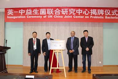 研讨会后进行了英-中益生菌联合研究中心的揭牌仪式。Arjan Narbad教授和陈卫教授作为联合研究中心英方和中方主任回顾了双方的合作历史,并对联合研究中心的运营规划和预期目标进行了介绍。陈卫教授、江波教授、Narbad教授、张灏教授共同为英-中益生菌联合研究中心揭牌。