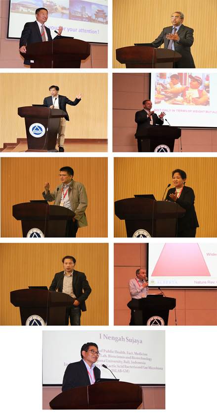 Arjan Narbad教授首先介绍了约氏乳杆菌对产气荚膜梭菌的拮抗研究。张和平教授探讨了益生菌疗法与传统疗法对IBS患者肠道菌群变化的影响。Paul de Vos教授揭示了不同益生元的肠道免疫调节作用。陈卫教授阐述了植物乳杆菌ZS2058通过转化共轭亚油酸缓解结肠炎的机制。王军教授介绍了人体肠道菌群与生活习惯、饮食习惯、健康状态、药物治疗以及宿主基因的相关性。Michael Ganzle教授指出了关于益生菌来源与性质的新知识将有助于在体外筛选合适的微生物。Julie D. Tan和I Nengah Sujaya教授介绍了本国的传统发酵食品与特色益生菌的挖掘。“热心肠先生”主编蓝灿辉介绍了益生菌产业化过程中的风险与应对策略。