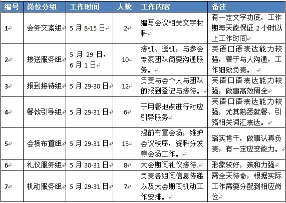 3. 具有良好的组织协调、语言表达和人际沟通能力。其他要求参照岗位设置备注,优先考虑有各类志愿服务经历的志愿者。