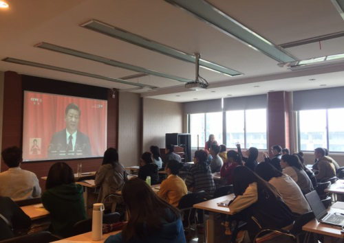 我院紧扣社会形势,把握时代脉搏,结合学生思想实际和学院特点,带领团员青年深入学习贯彻习近平总书记系列重要讲话精神的重要意义和具体要求。结合党的十九大、马克思诞辰200周年、两会召开、长征胜利纪念、国家宪法日、建党建团周年纪念等重大政治事件,搭建“与信仰对话”平台,与榜样交流,加强理论学习和思想建设,帮树远大理想和坚定信念;开展“老少携手,党团共建”活动和青年马克思主义培养工程下的分团校学生骨干训练营,带领学生骨干一起“不忘初心,继续前进”;举办“我的青春故事”报告会和系列优秀学生分享会,邀请多家企业高管、优秀青年教师以及不同阶段的优秀学生代表分享经验,帮助广大团员青年明确目标、找准路径。