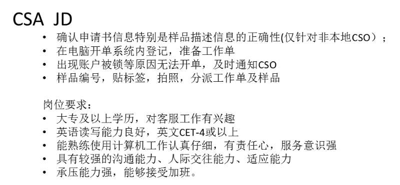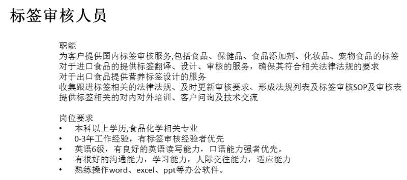 Intertek天祥集团,富时100,总部在英国伦敦,全球超过42000人,主营业务是食品检测,认证等三方行业。感兴趣的朋友可直接联系:沈女士,021-53396686,Sammy.shen@intertek.com