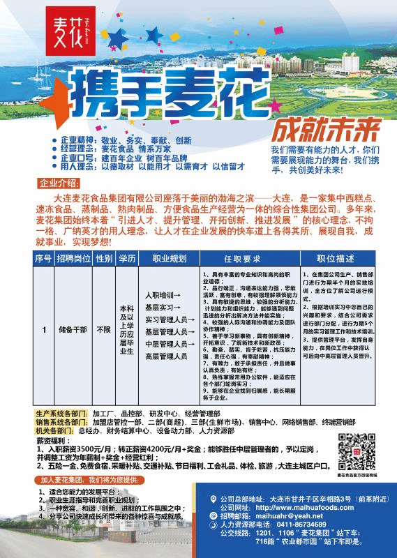 就业【2018】 193号 大连麦花食品集团有限公司招聘