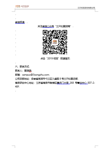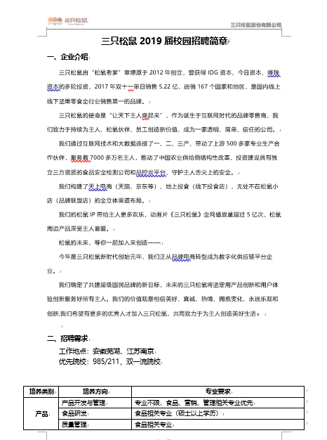 就业【2019】 19号 三只松鼠2019届校园招聘简章
