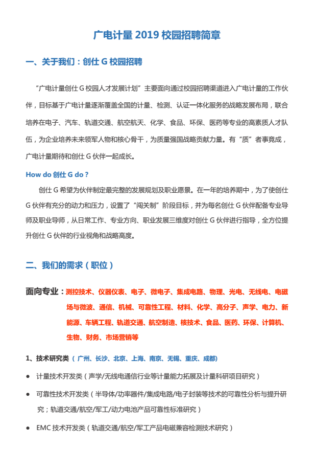 就业【2019】 26号 广电计量2019校园招聘简章