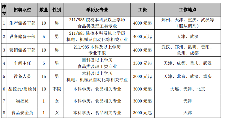 注:储备干部类岗位伟德国际victor1946食品科学与工程专业应届毕业生起薪 5000 元