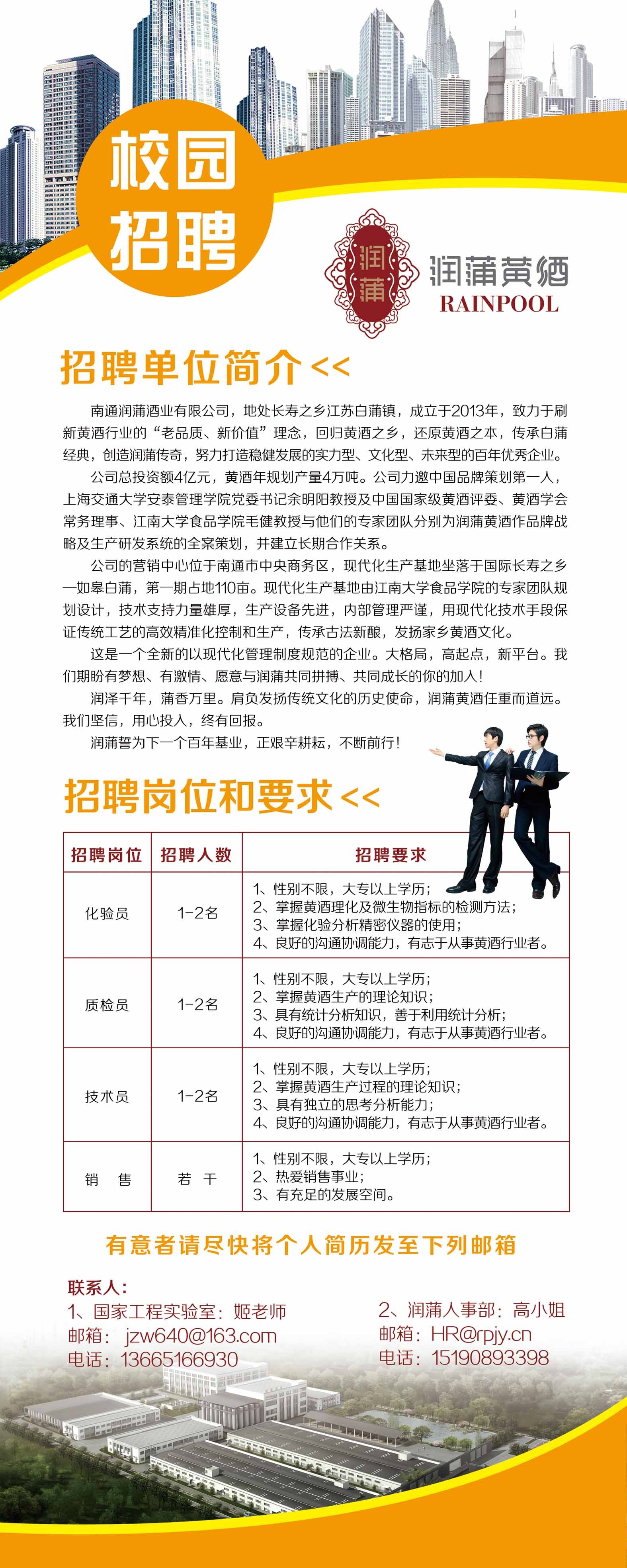 食就业[2014]164号 南通润蒲酒业有限公司招聘信息