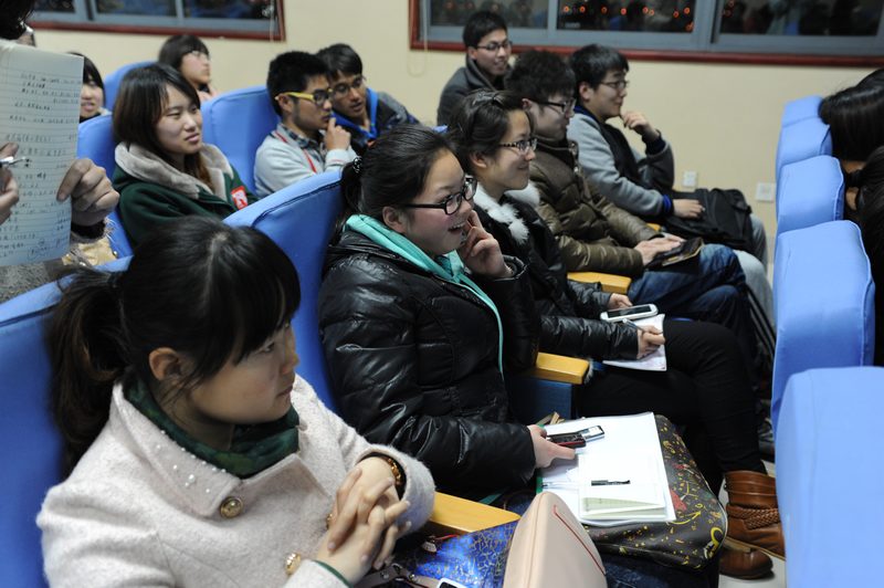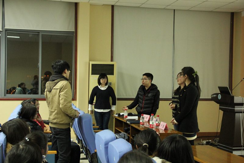 分享会还未开始,台下已经座无虚席,来自不同年级的同学都想聆听前辈们的经验,为自己今后的发展找到方向。乔頔和刘诺诺主要为同观众讲述了他们从大三一路走来所面临的问题。经历了大一的新奇和大二的积淀,即将步入的大三的同学已经走到了人生的十字路口,是找工作、争取出国、还是考研,每一条道路都充满挑战。乔頔和刘诺诺详细为同学们权衡了其中的利弊,告诉大家一定要从自身特点出发,选择一条适合自己的道路。